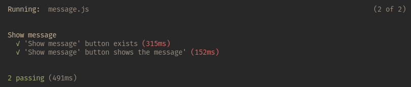 We are about to write our first end-to-end test. The goal is to check if clicking the button with “Show message” label will show the message.