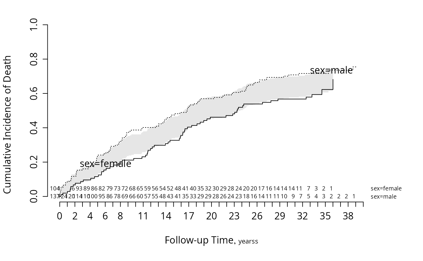 f <- npsurv(Surv(stop, event) ~ sex, data=m)