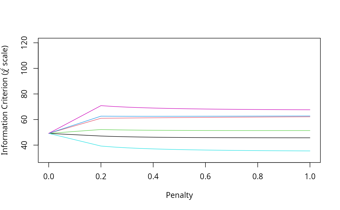 the first two types of penalty factors are plotted, showing only the \(AIC\).