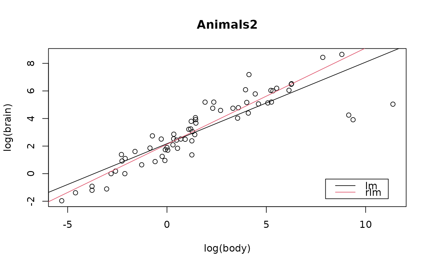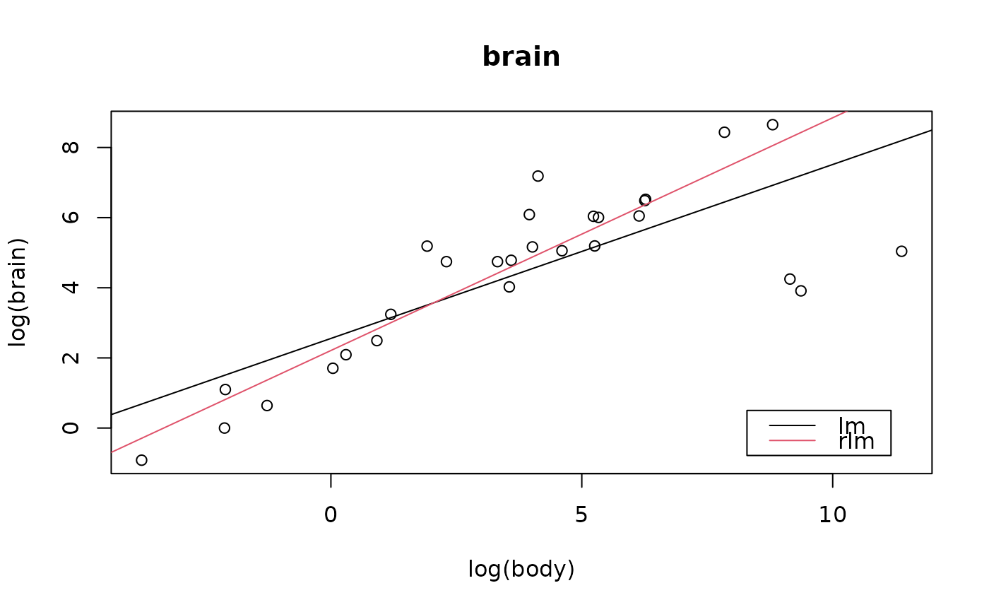 legend("bottomright", leg = c("lm", "rlm"), col=1:2, lwd=1, inset = 1/20)