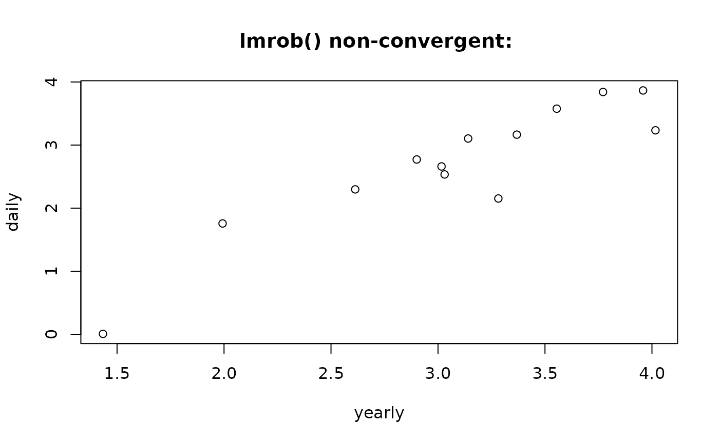 rr <- lmrob(daily ~ yearly, na.action = na.exclude,