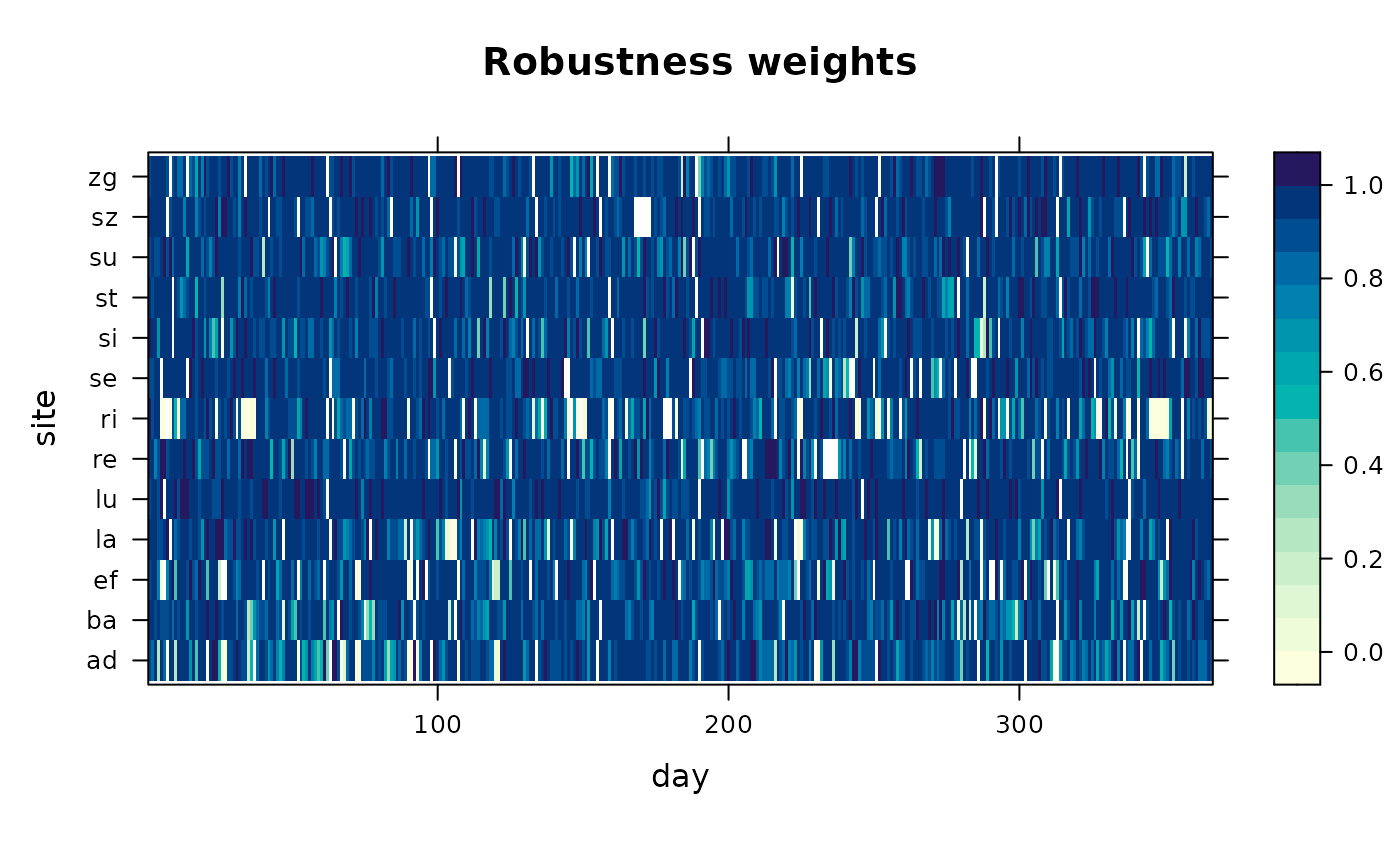 lattice::levelplot(aW, asp=1/2, main="Robustness weights",