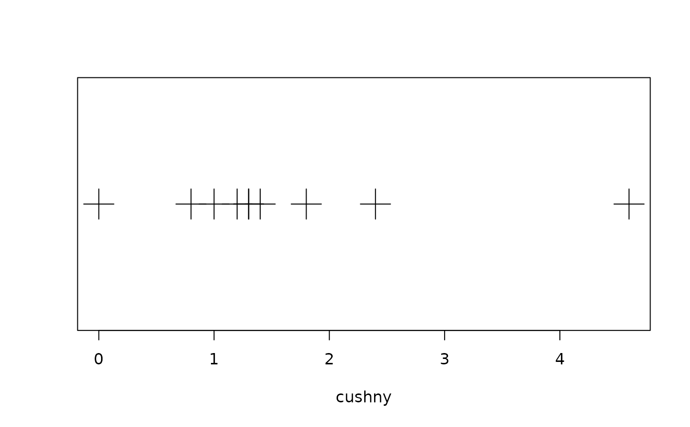 plot(cushny, rep(0, 10), pch = 3, cex = 3,