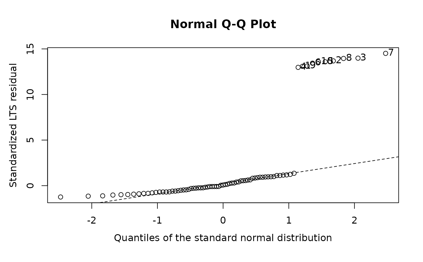 <!-- % ltsPlot(x, which = c("all","rqq","rindex","rfit","rdiag"), classic=FALSE, ask=(which=="all" && dev.interactive()), id.n, \dots) -->a lts object, typically result of ltsReg.