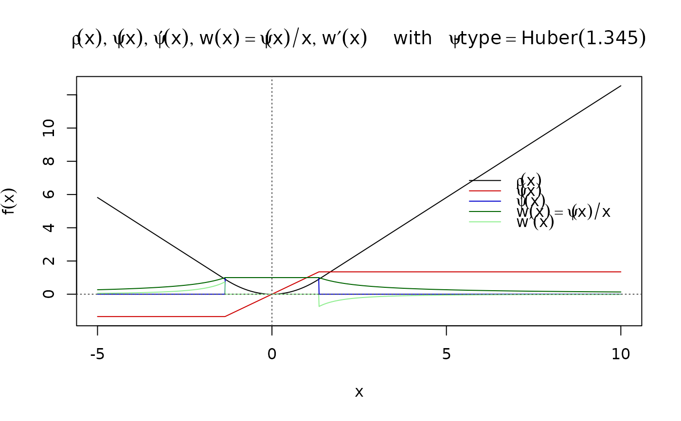 cPsi <- psiFunc(rho = function(x,.) x^2 / 2, psi = function(x, .) x,