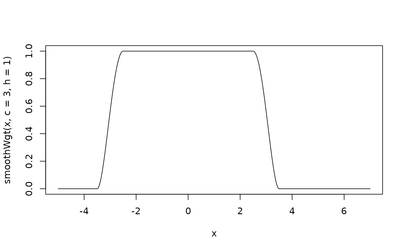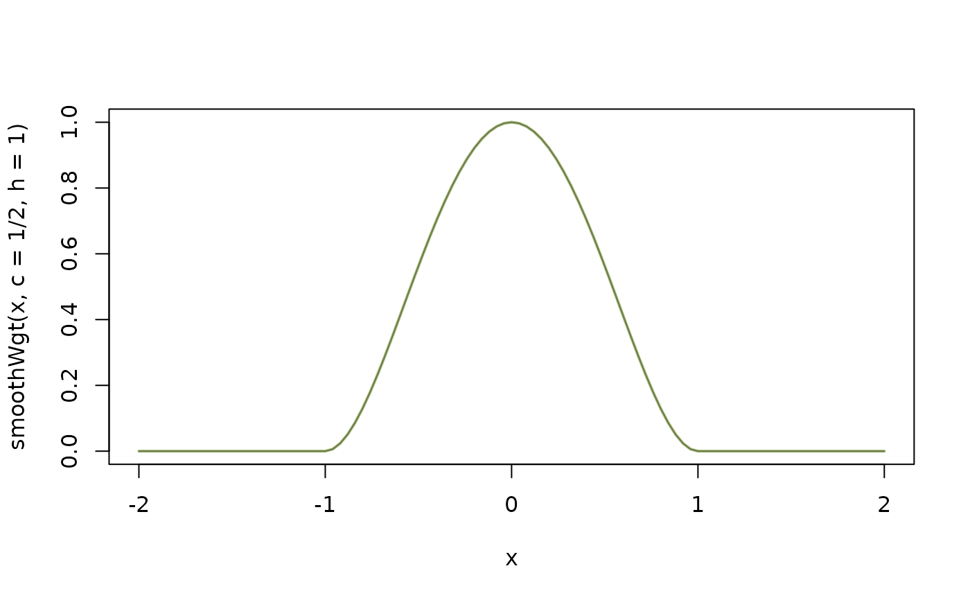 smoothWgt(x, c, h)Let \(w(x;c,h) := \)smoothWgt(x, c, h). Then,