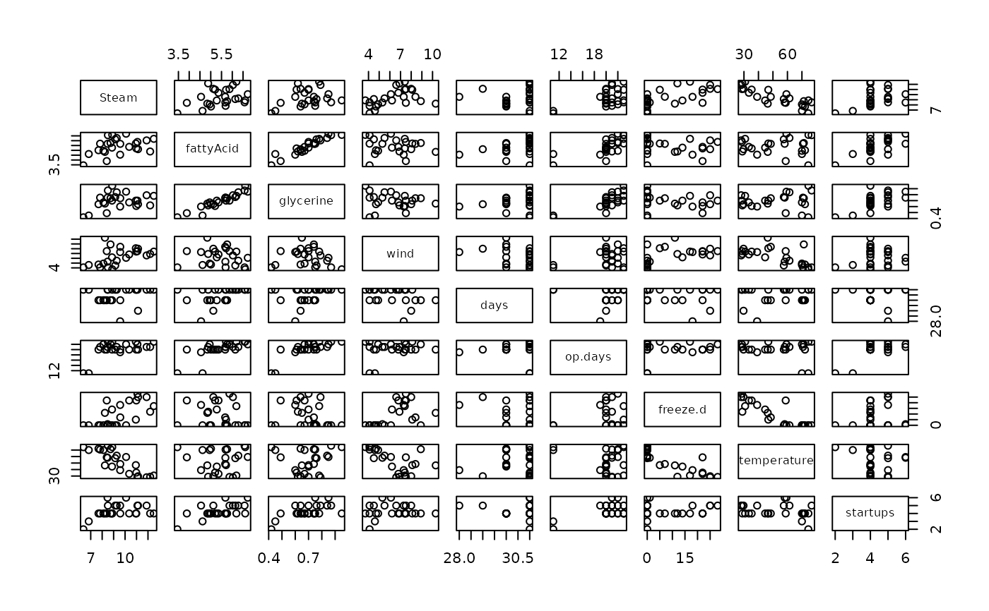 pairs(Steam ~ temperature+op.days, steamUse)
