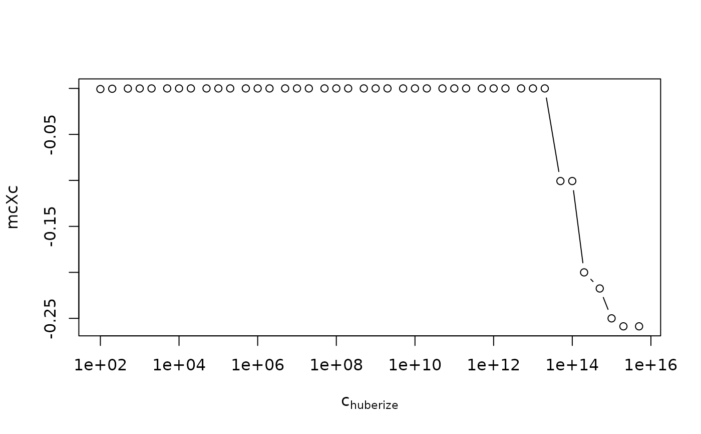 plot( mcXc ~ cHs, type="b", log="x" , xlab=quote(c[huberize]))