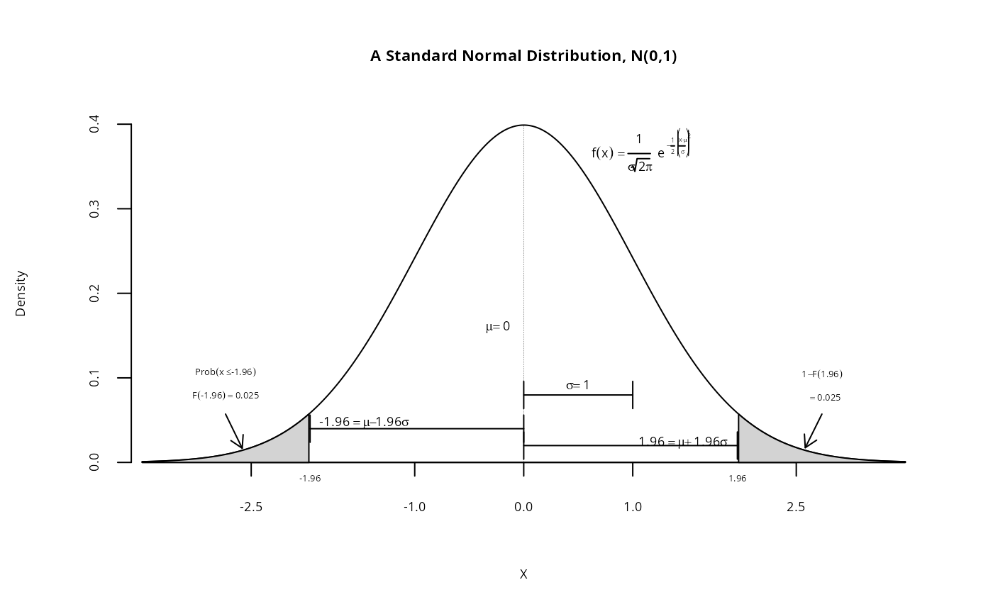 drawnorm(mu = 0, sigma = 1, main = "A Standard Normal Distribution, N(0,1)",