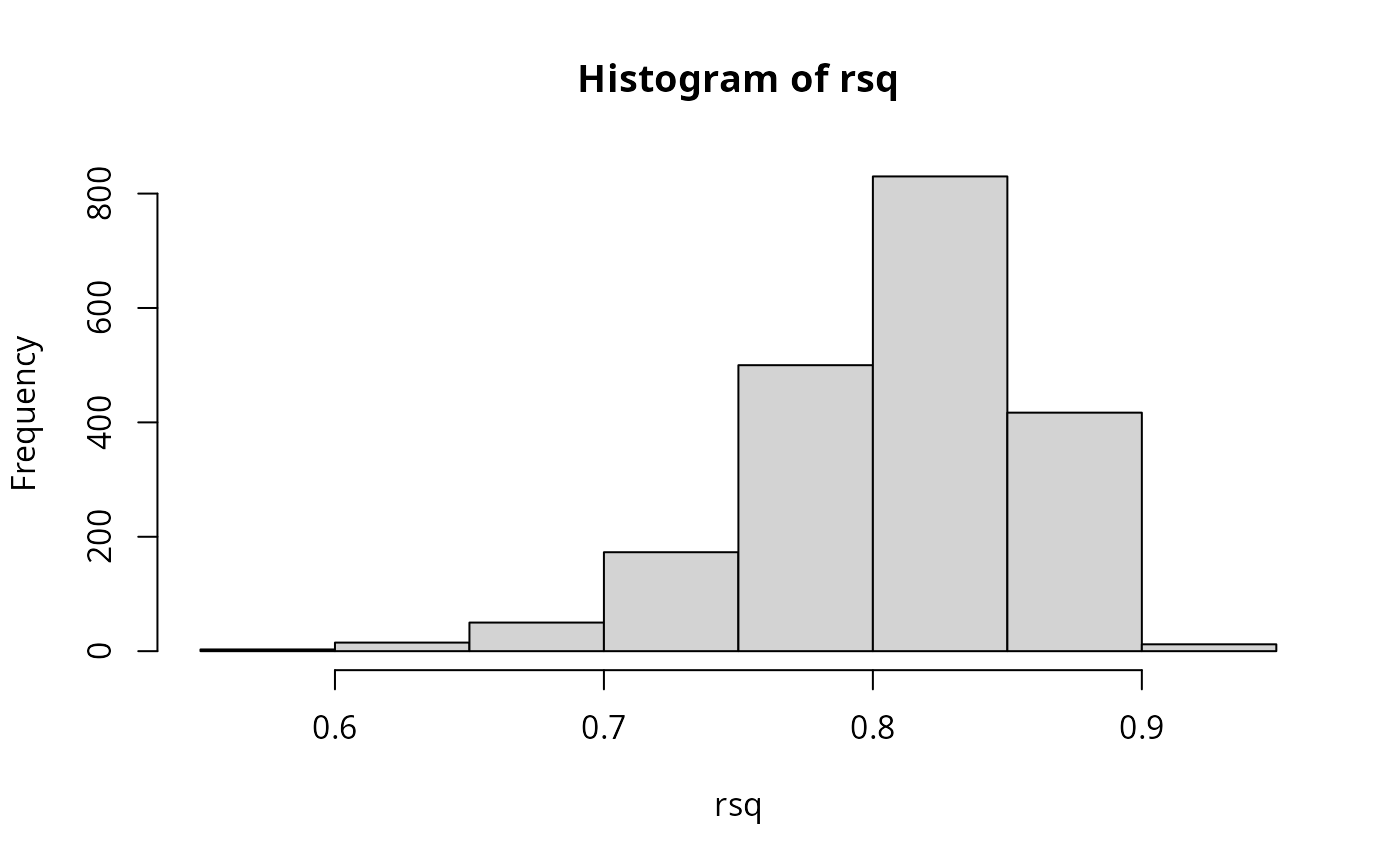 A vector of R-squared values with length equal to the posterior sample size (the posterior distribution of R-squared).
