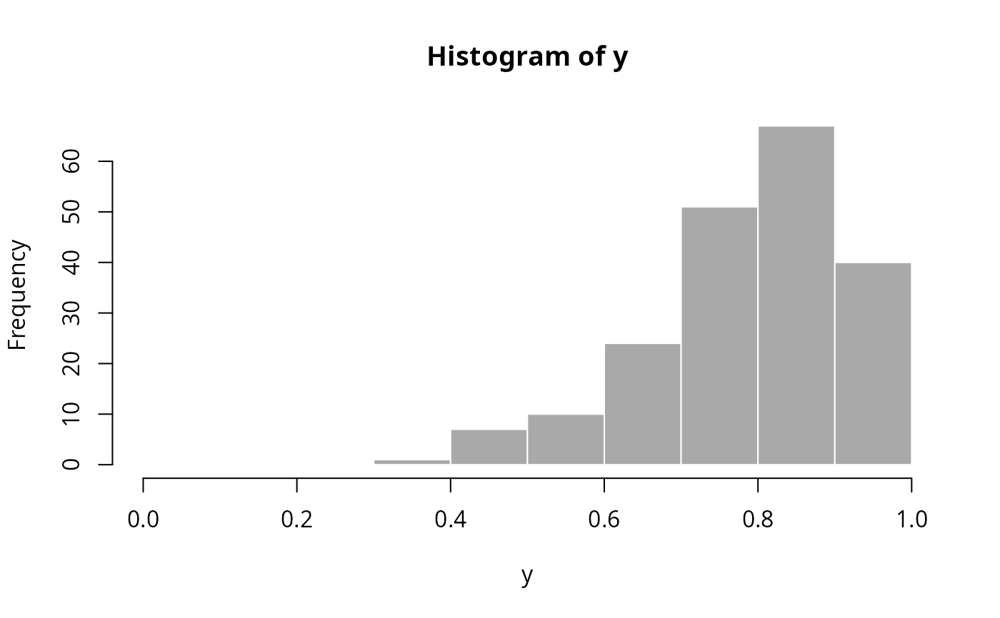 hist(y, col = "dark grey", border = FALSE, xlim = c(0,1))