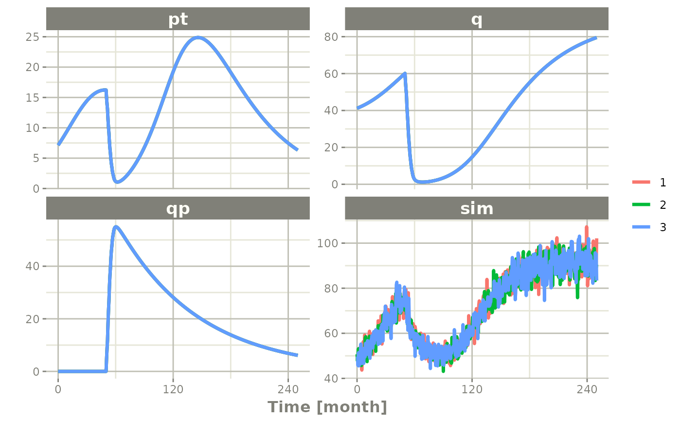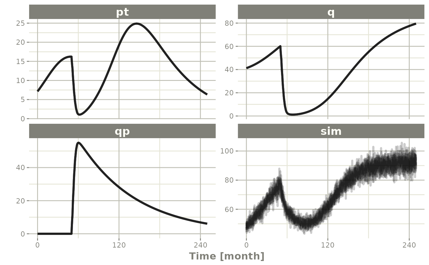 sim2 <- sim1 %>% confint(c("pt","q","qp","sim"),level=0.90); # Create Simulation intervals