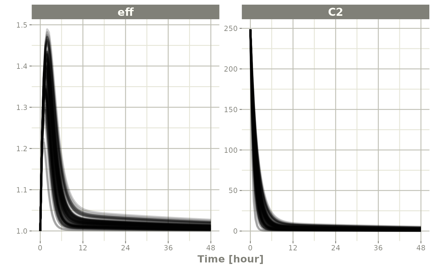 et(seq(0,48, length.out=100), cmt="C2")Which allows you to solve the system: