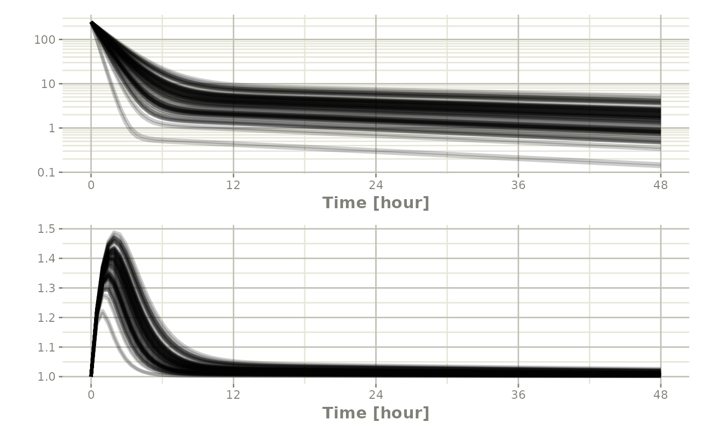 sim <- rxSolve(rx1, theta, evw, nSub=100, nStud=10,