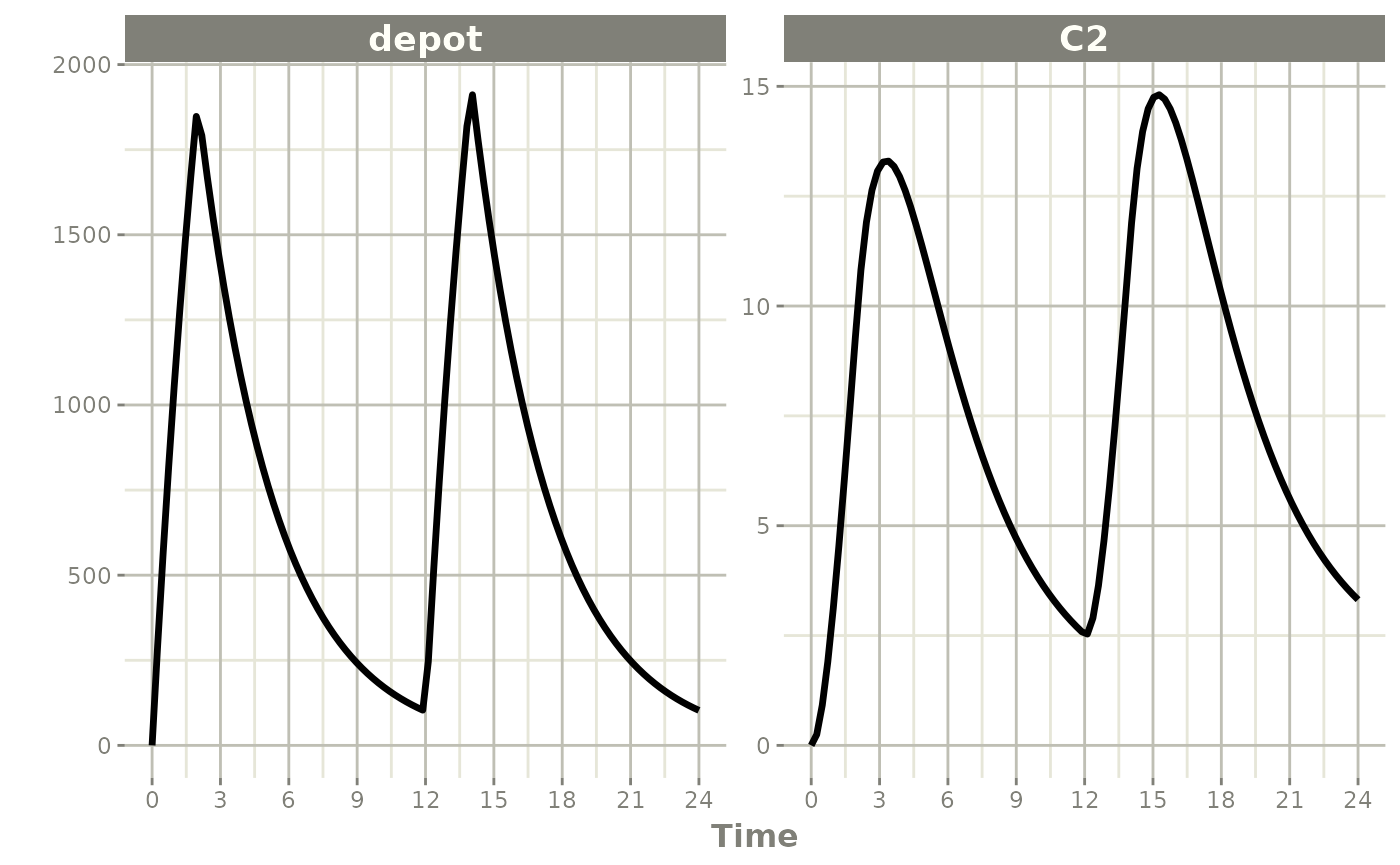 p1 <- rxSolve(m1, ev, c(fdepot=1.25)) %>% plot(depot) +