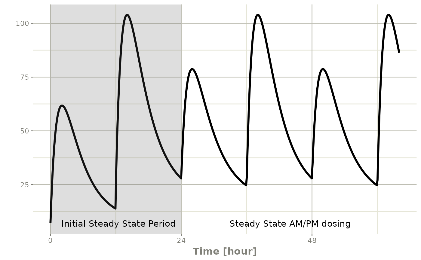 label="Steady State AM/PM dosing")#> i parameter labels from comments are typically ignored in non-interactive mode