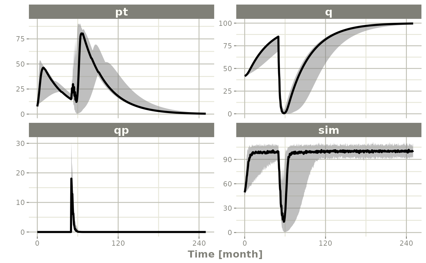sim2 <- sim1 %>% confint(c("pt","q","qp","sim"),level=0.90); # Create Simulation intervals