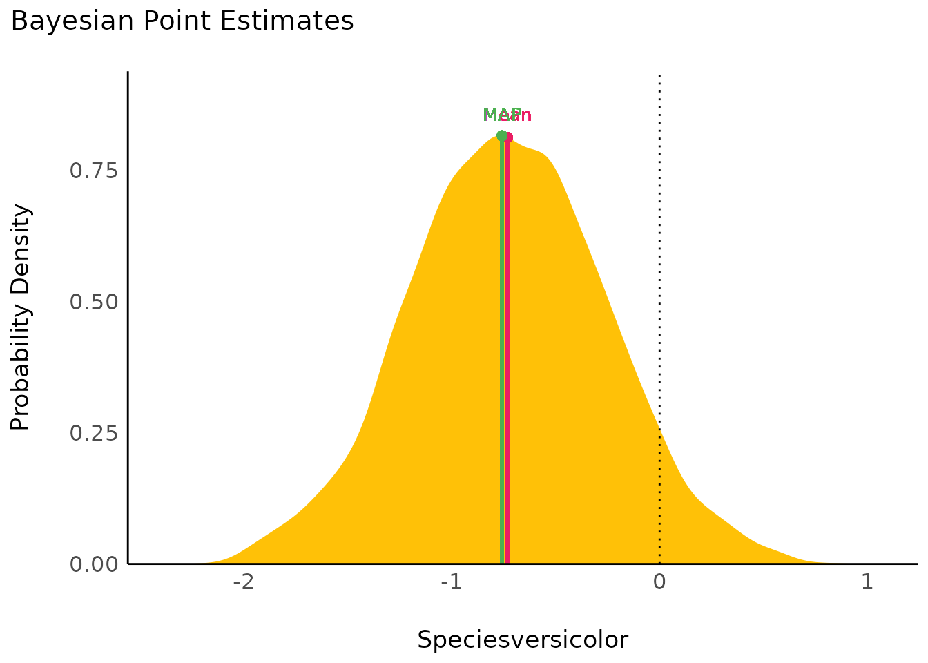 #> Speciesvirginica | Undecided | 8.50 % | [-0.56, 1.52]