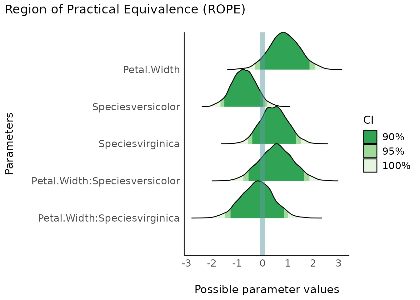 #> Petal.Width:Speciesvirginica | Undecided | 11.46 % | [-1.22, 0.81]