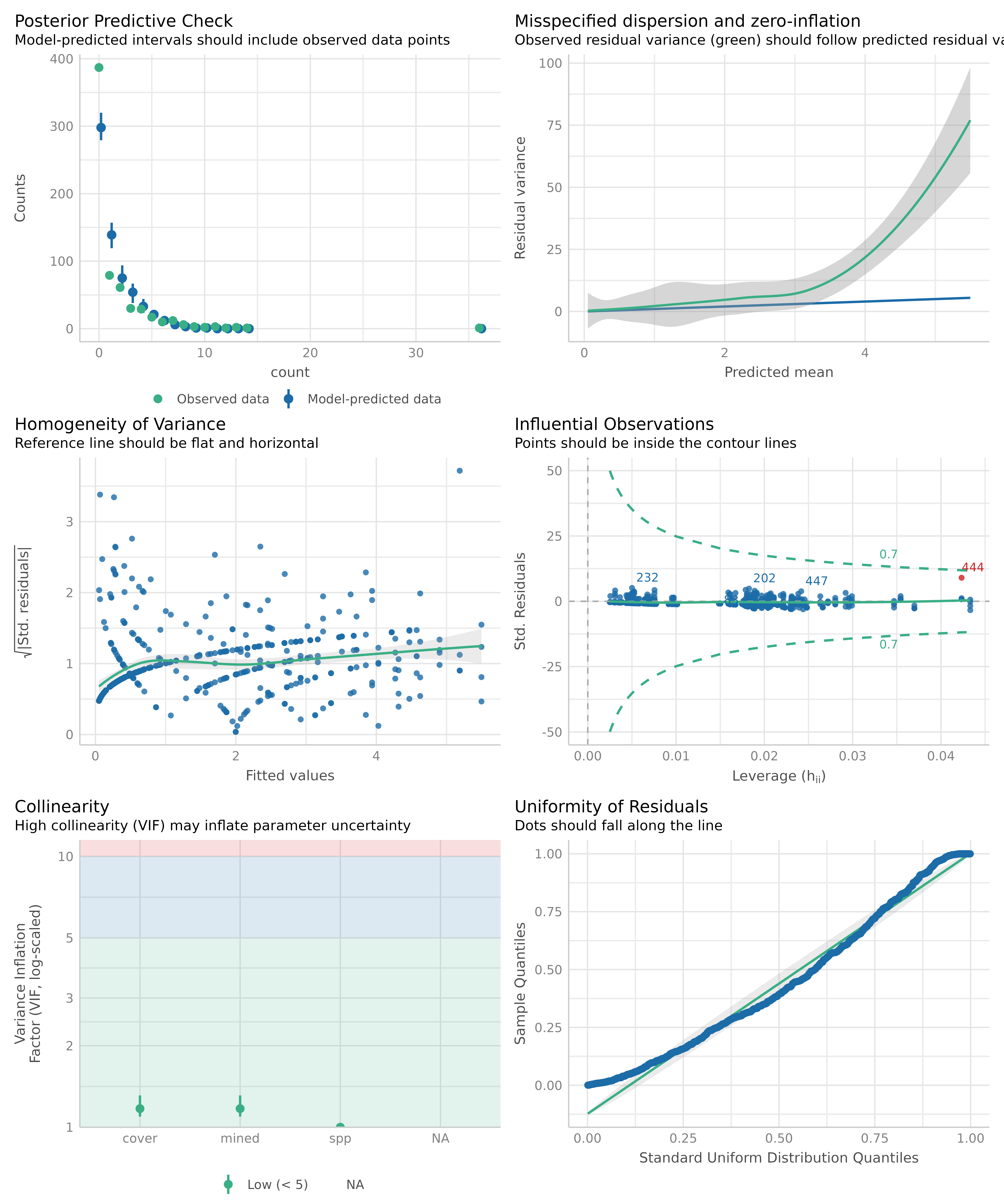 count ~ spp + mined + cover + cover2 + (1 | site),