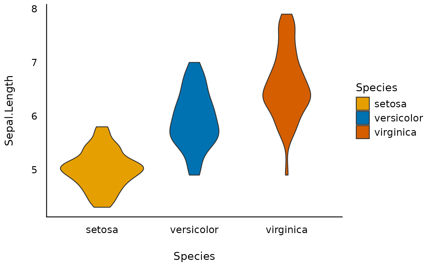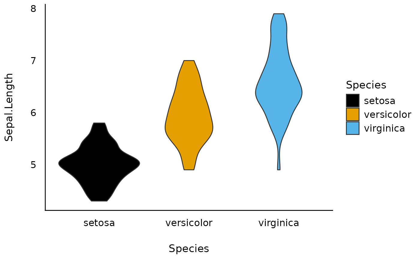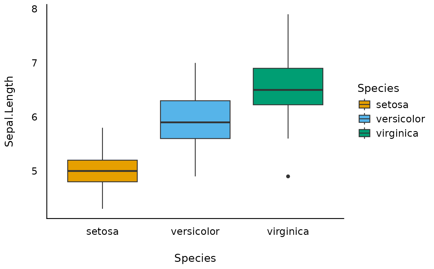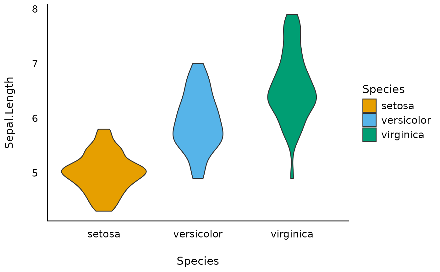 ggplot(iris, aes(x = Species, y = Sepal.Length, fill = Species)) +