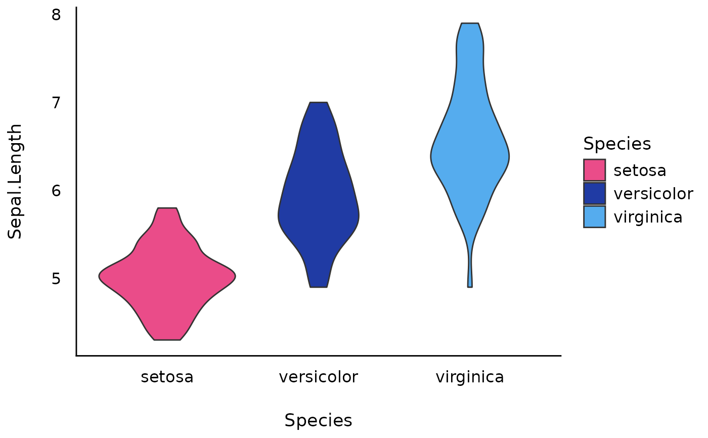 ggplot(iris, aes(x = Species, y = Sepal.Length, fill = Species)) +