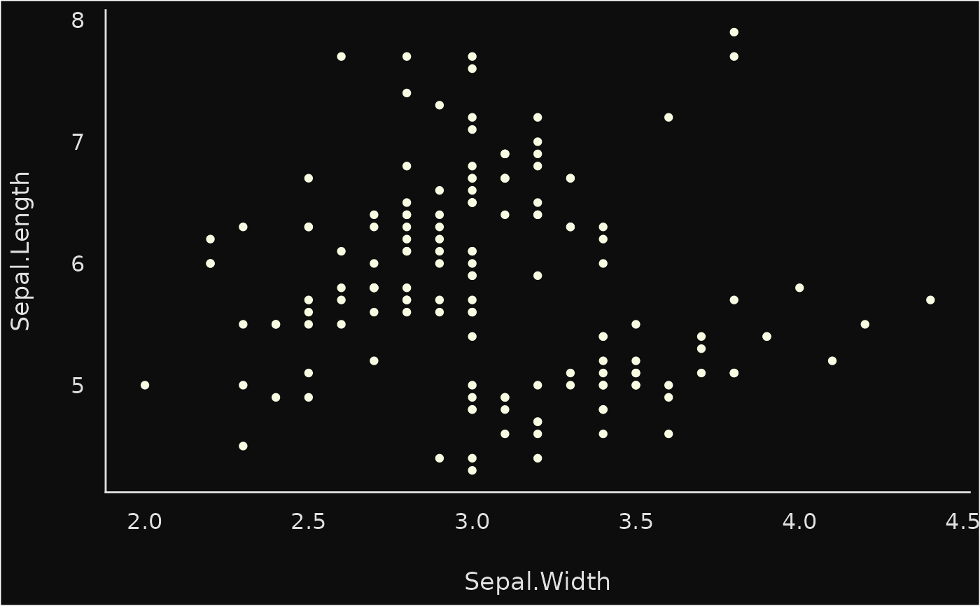 ggplot(iris, aes(x = Sepal.Width, y = Sepal.Length)) +