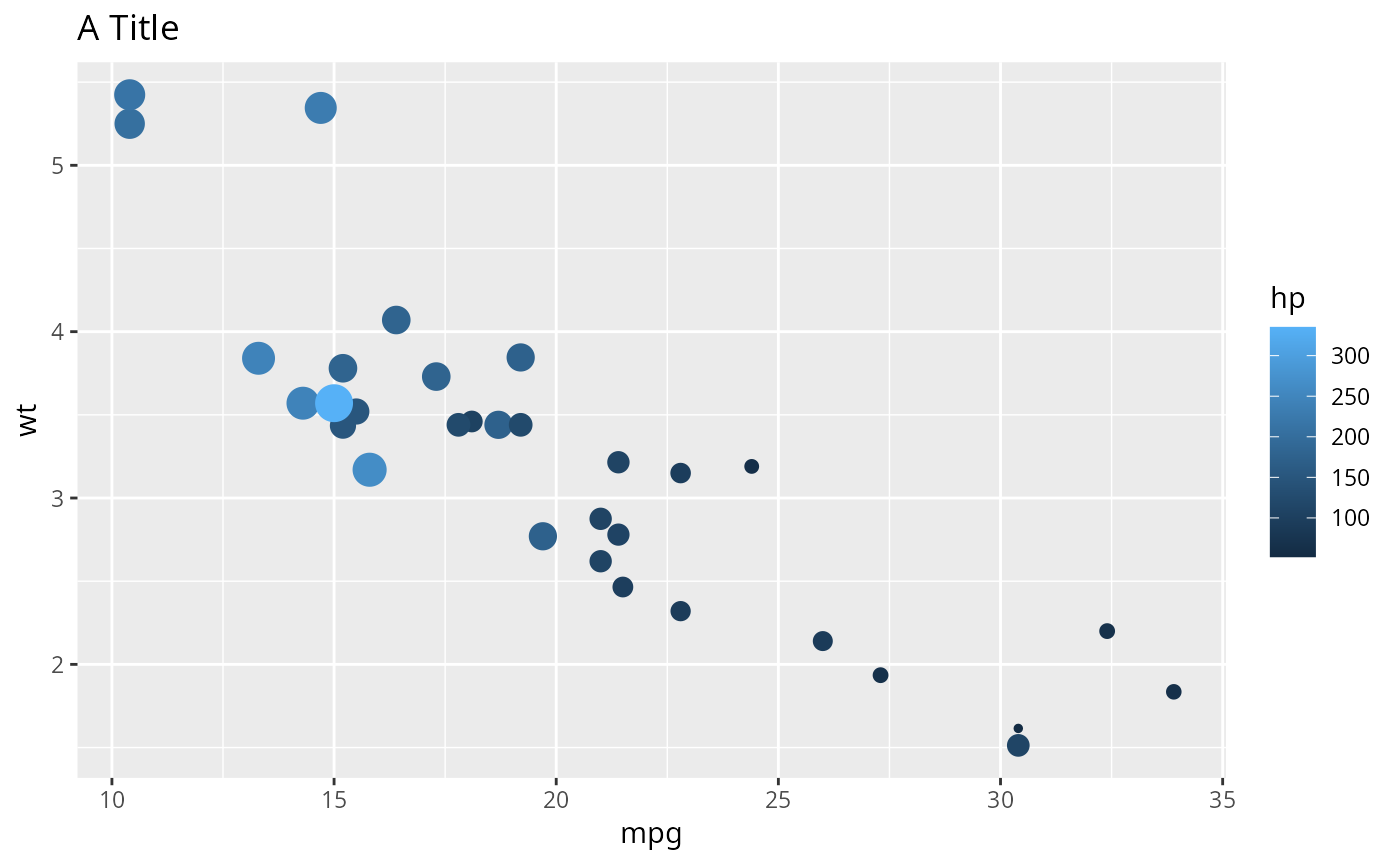 aes = list(x = "mpg", y = "wt", size = "hp", color = "hp"),