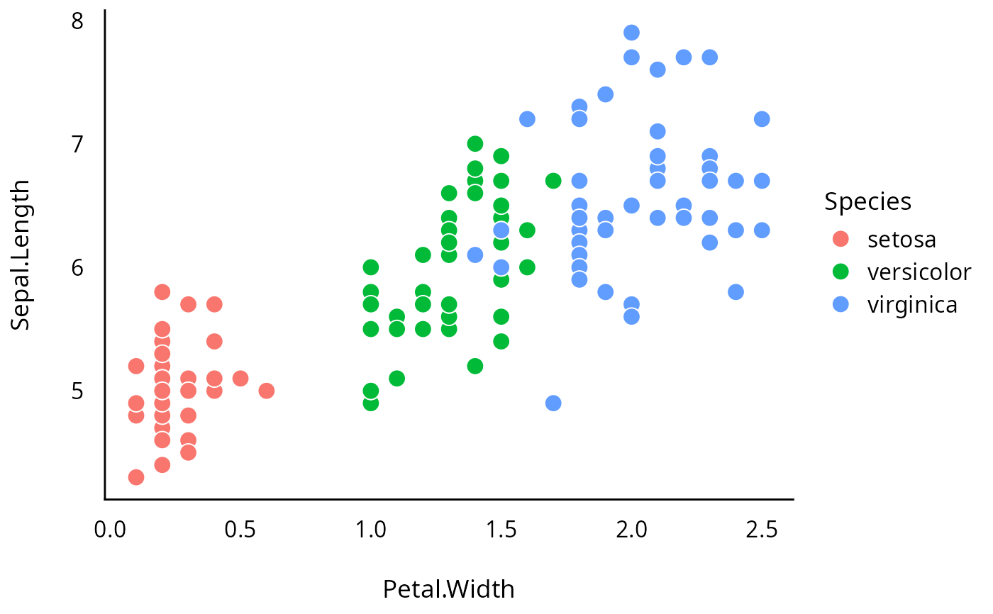 normal <- ggplot(iris, aes(x = Petal.Width, y = Sepal.Length)) +