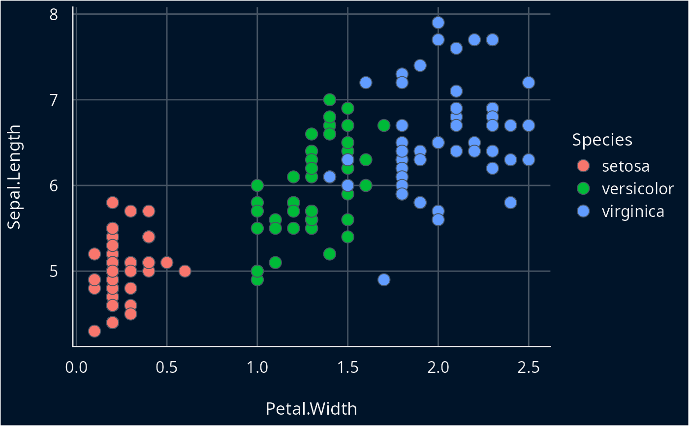 ggplot(iris, aes(x = Petal.Width, y = Sepal.Length, fill = Species)) +