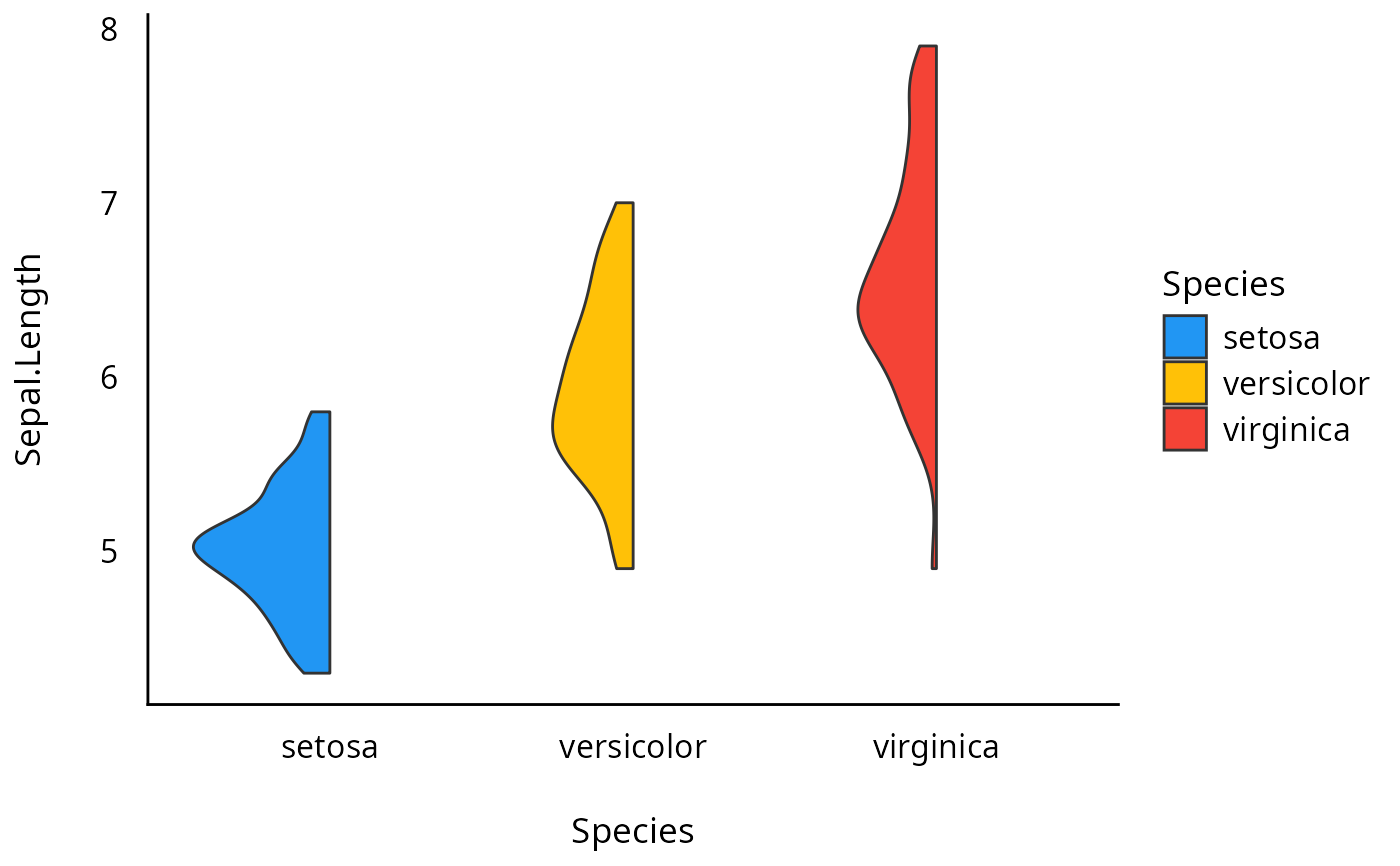 ggplot(iris, aes(x = Species, y = Sepal.Length, fill = Species)) +