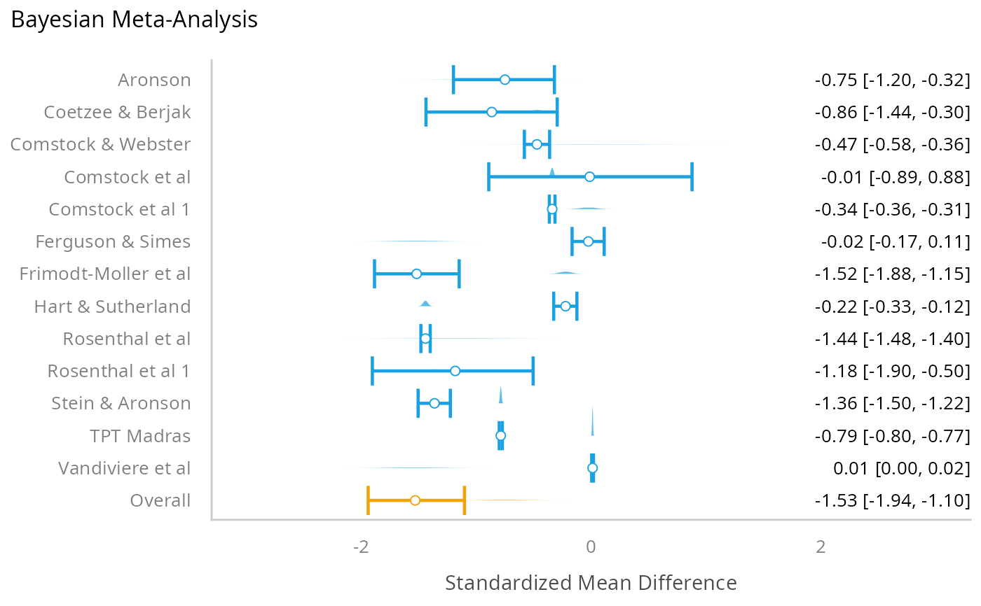The plot() method for the parameters::model_parameters() function when used with brms-meta-analysis models.