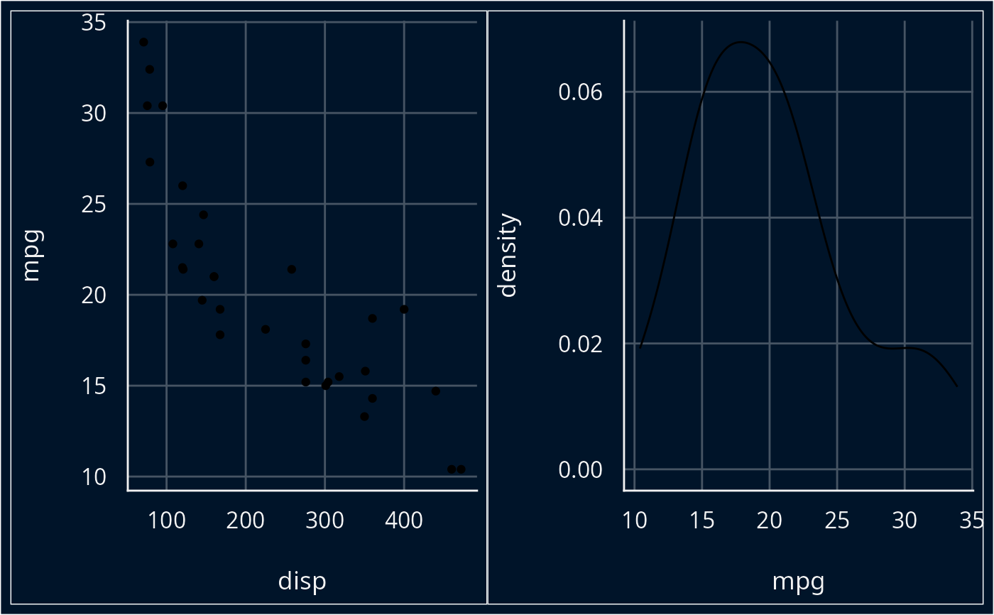 p1 <- ggplot(mtcars, aes(x = disp, y = mpg)) +