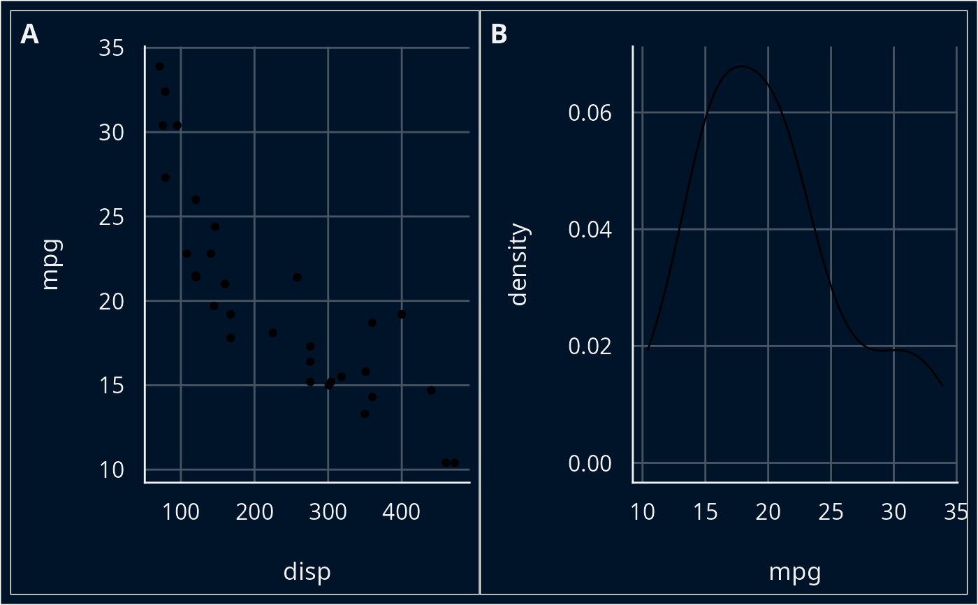 p2 <- ggplot(mtcars, aes(x = mpg)) +
