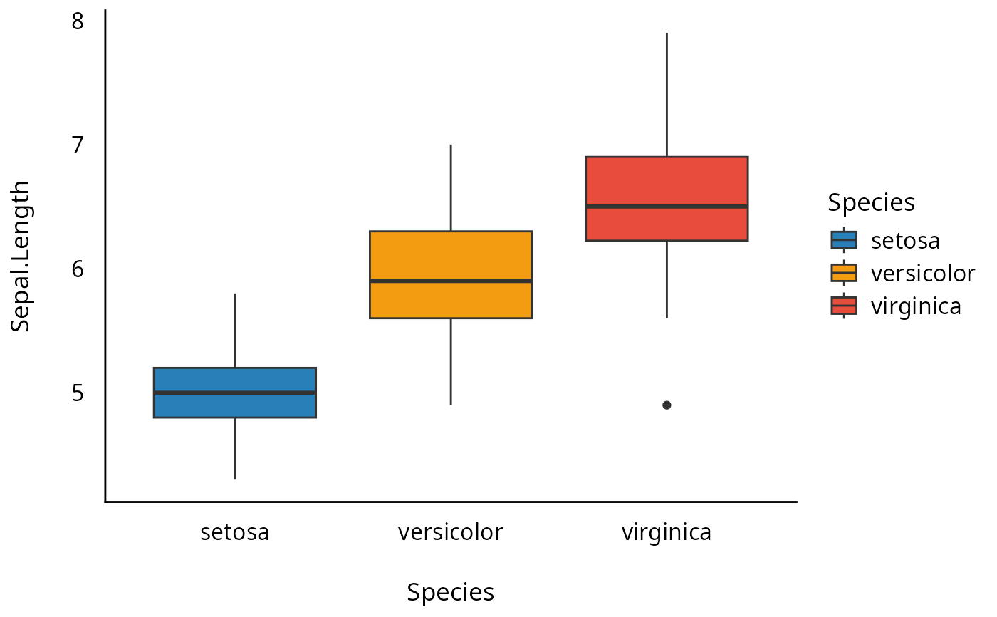 ggplot(iris, aes(x = Species, y = Sepal.Length, fill = Species)) +