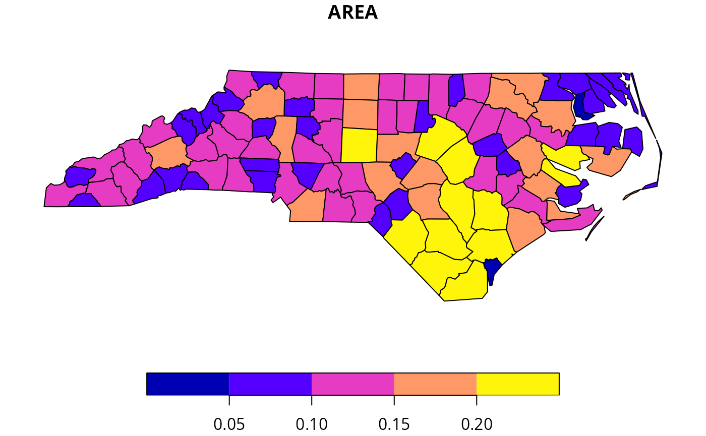 plot(nc["f"], axes = TRUE, key.pos = 4, pal = sf.colors(10), key.width = lcm(5))