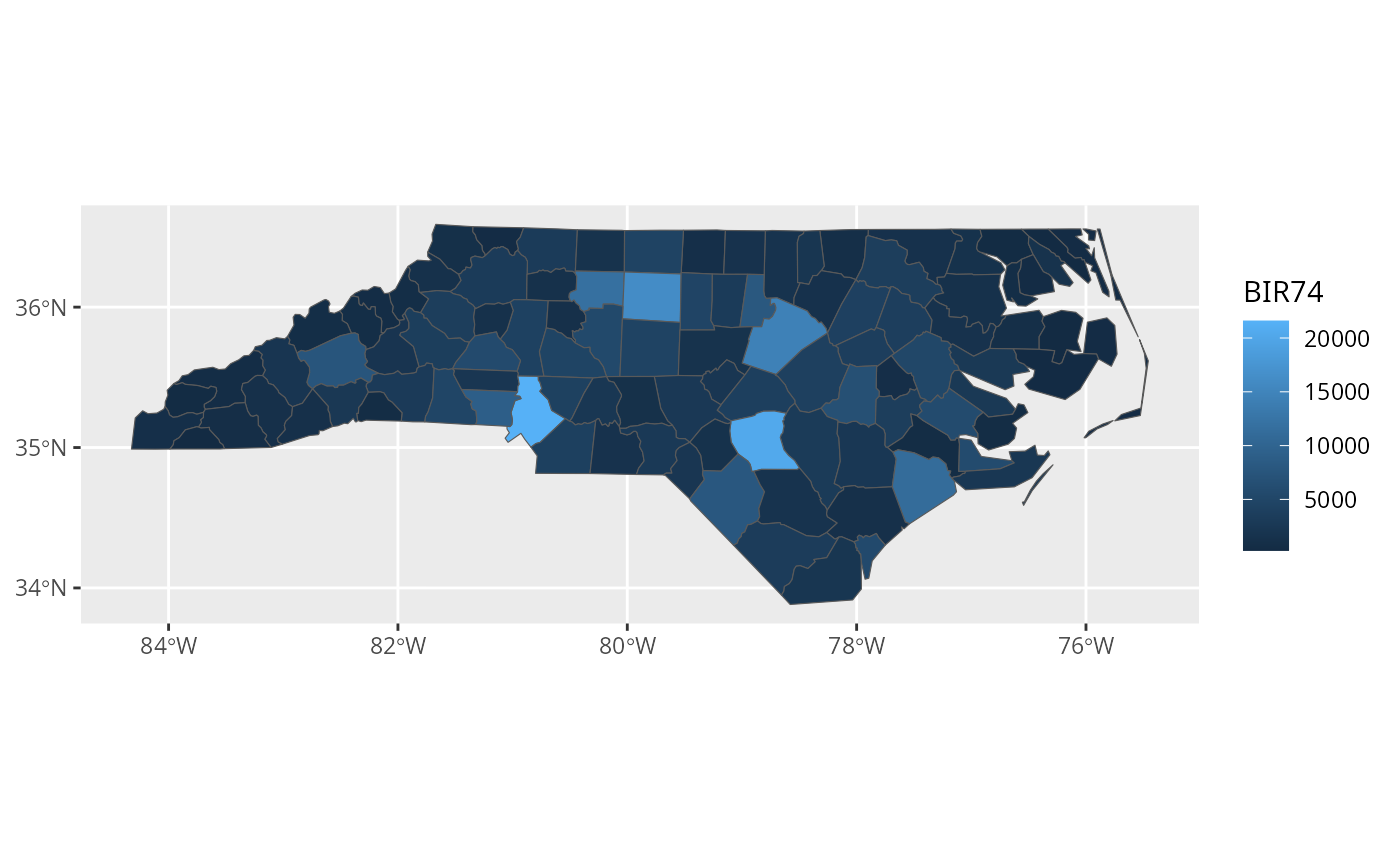 geom_sf(data = nc, aes(fill = BIR74)) +