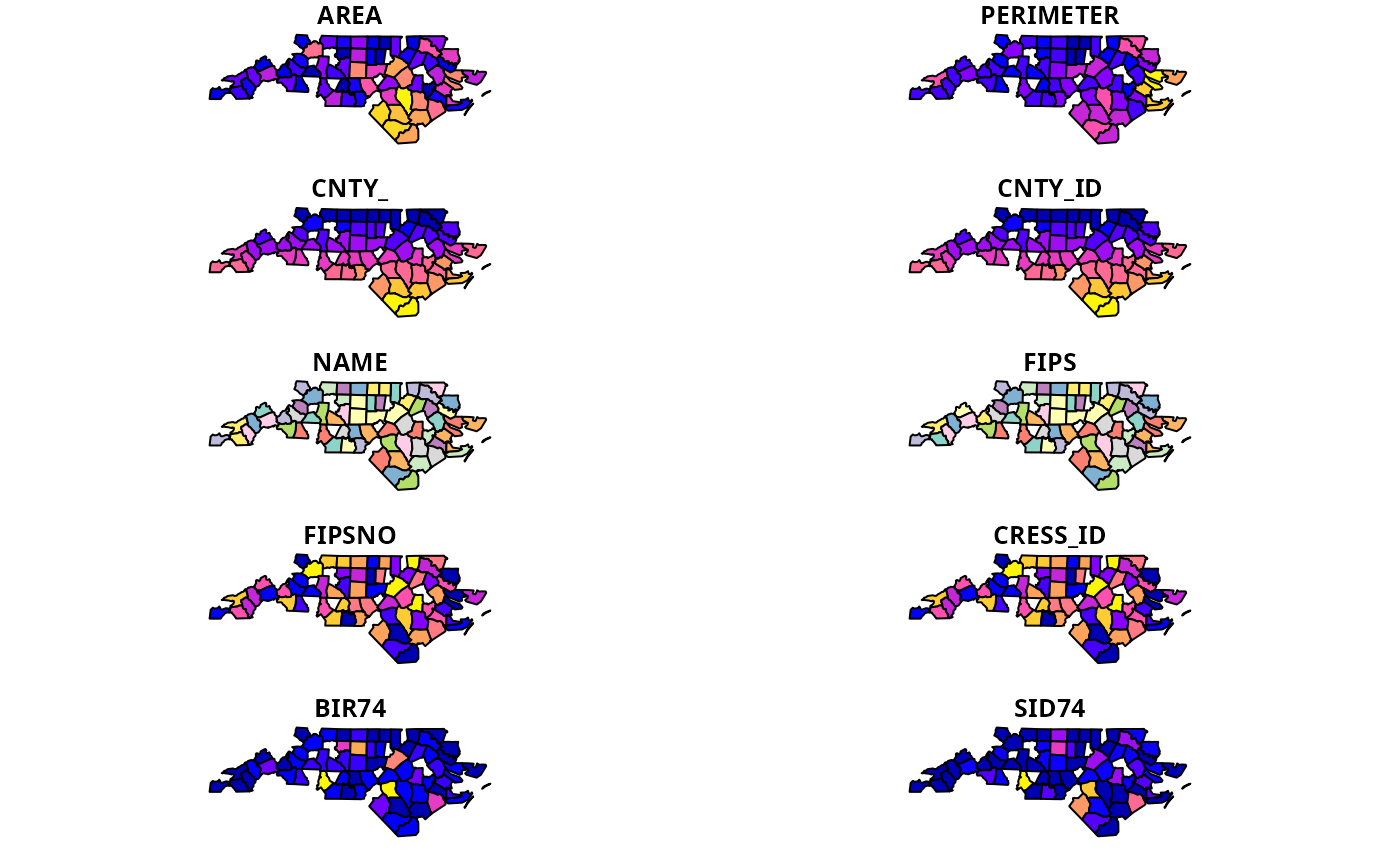 #>    AREA PERIMETER CNTY_ CNTY_ID NAME   FIPS  FIPSNO CRESS_ID BIR74 SID74 NWBIR74