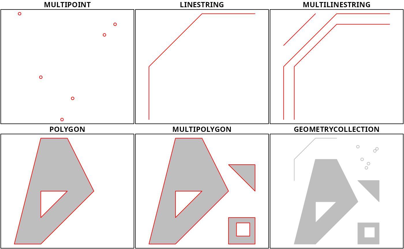 Simple feature geometry types