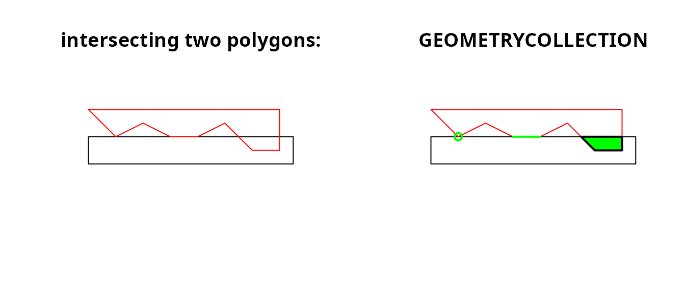 polygons may yield a GEOMETRYCOLLECTION with a point, line