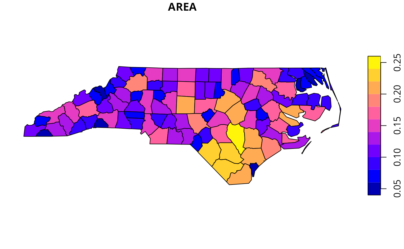 plot(nc["AREA"], key.pos = 4)