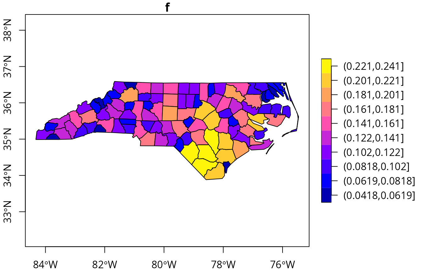 plot(nc["f"], axes = TRUE, key.pos = 4, pal = sf.colors(10), key.width = lcm(5))