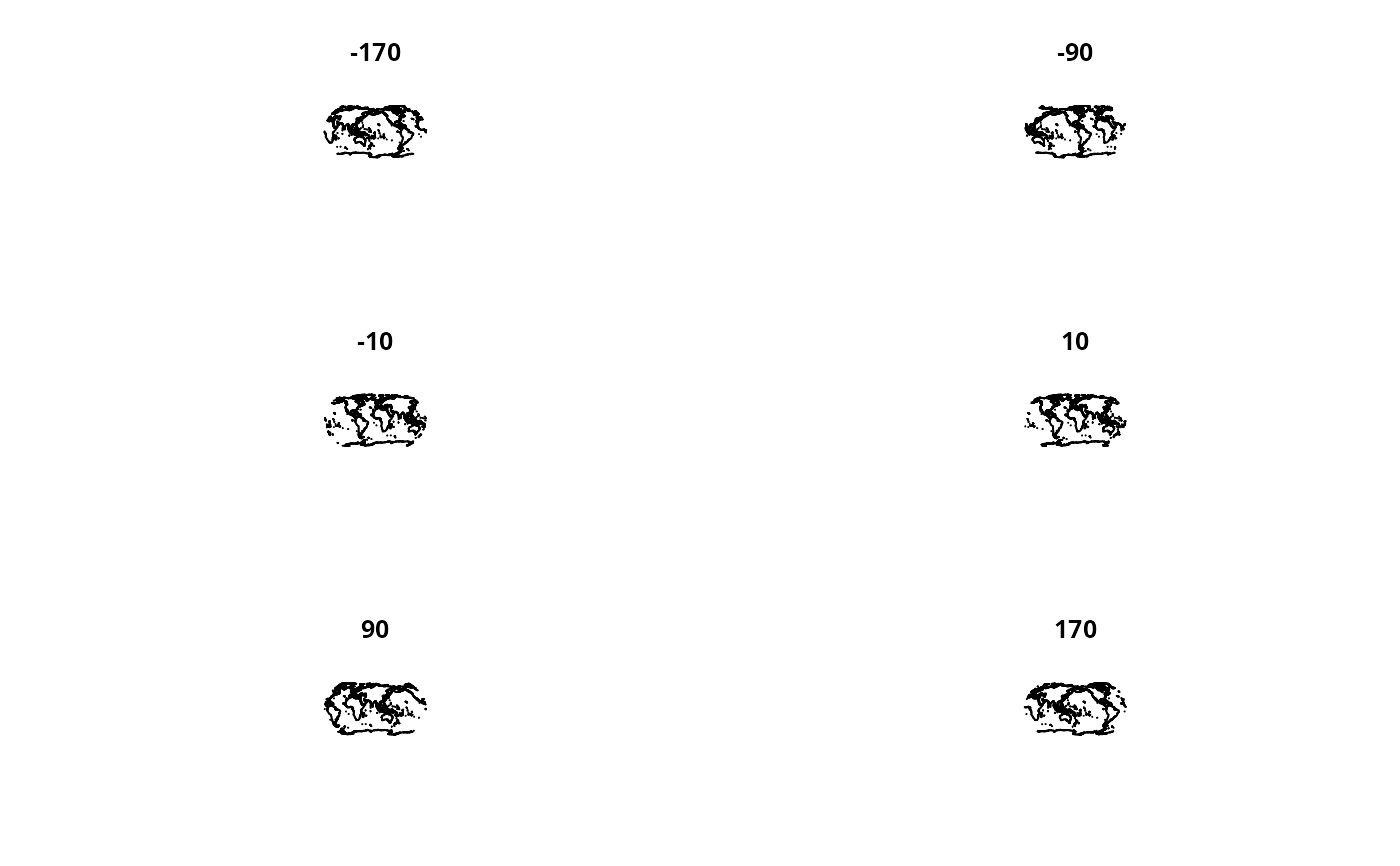 for (lon_0 in c(-170, -90, -10, 10, 90, 170)) {