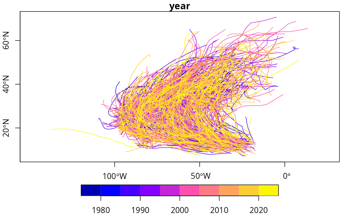 x <- storms.sf %>% group_by(name, year) %>% nest