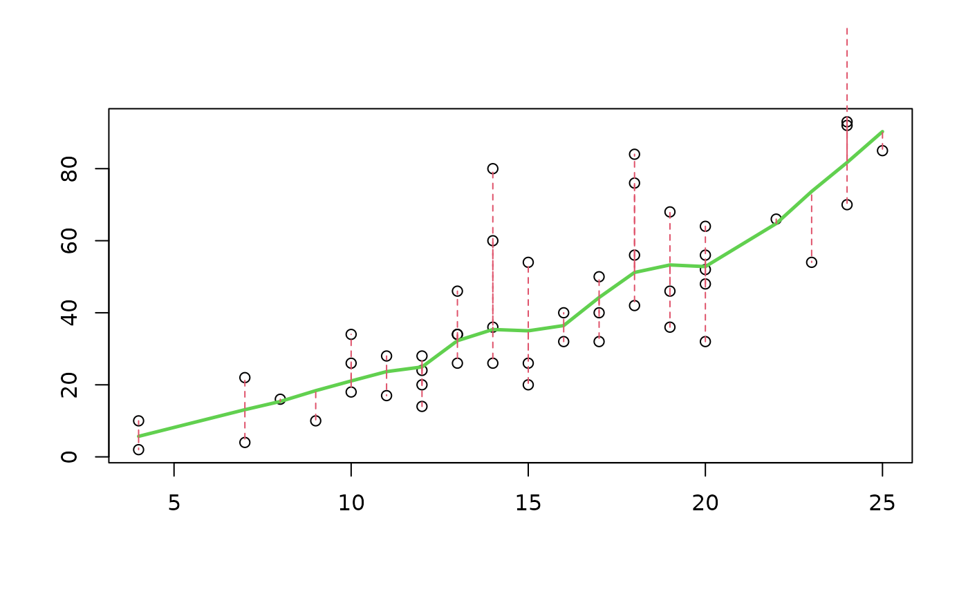 plotDS.RdFor one-dimensional nonparametric regression, plot the data and fitted values, typically a smooth function, and optionally use segments to visualize the residuals.