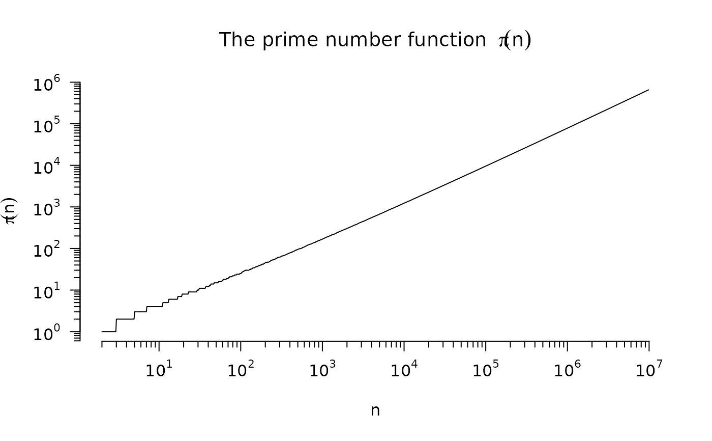plot(pi.n, 2, 1e7, n = 1024, log="xy", axes = FALSE,