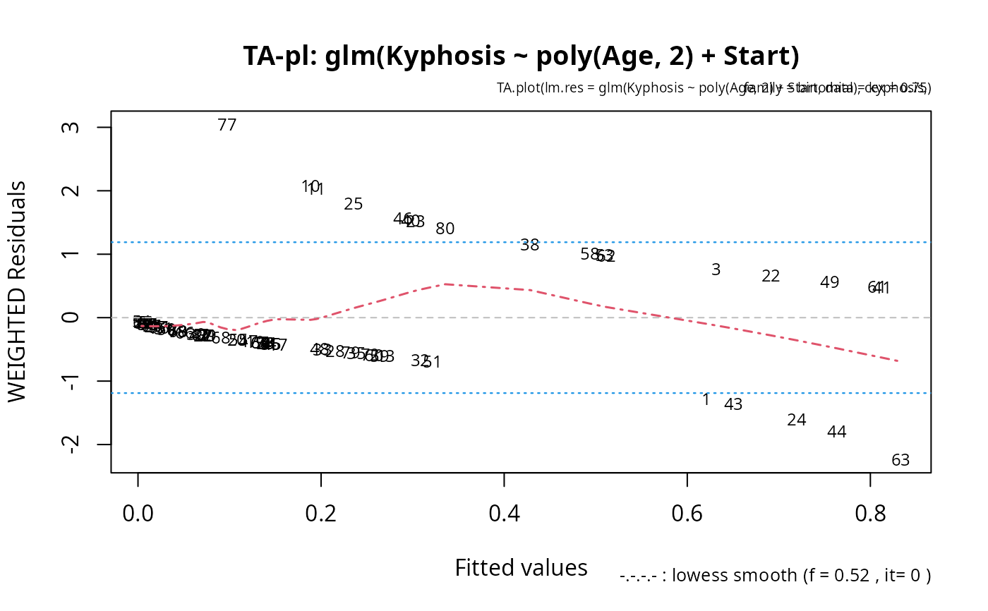 TA.plot(glm(Kyphosis ~ poly(Age,2) + Start, data=kyphosis, family = binomial),