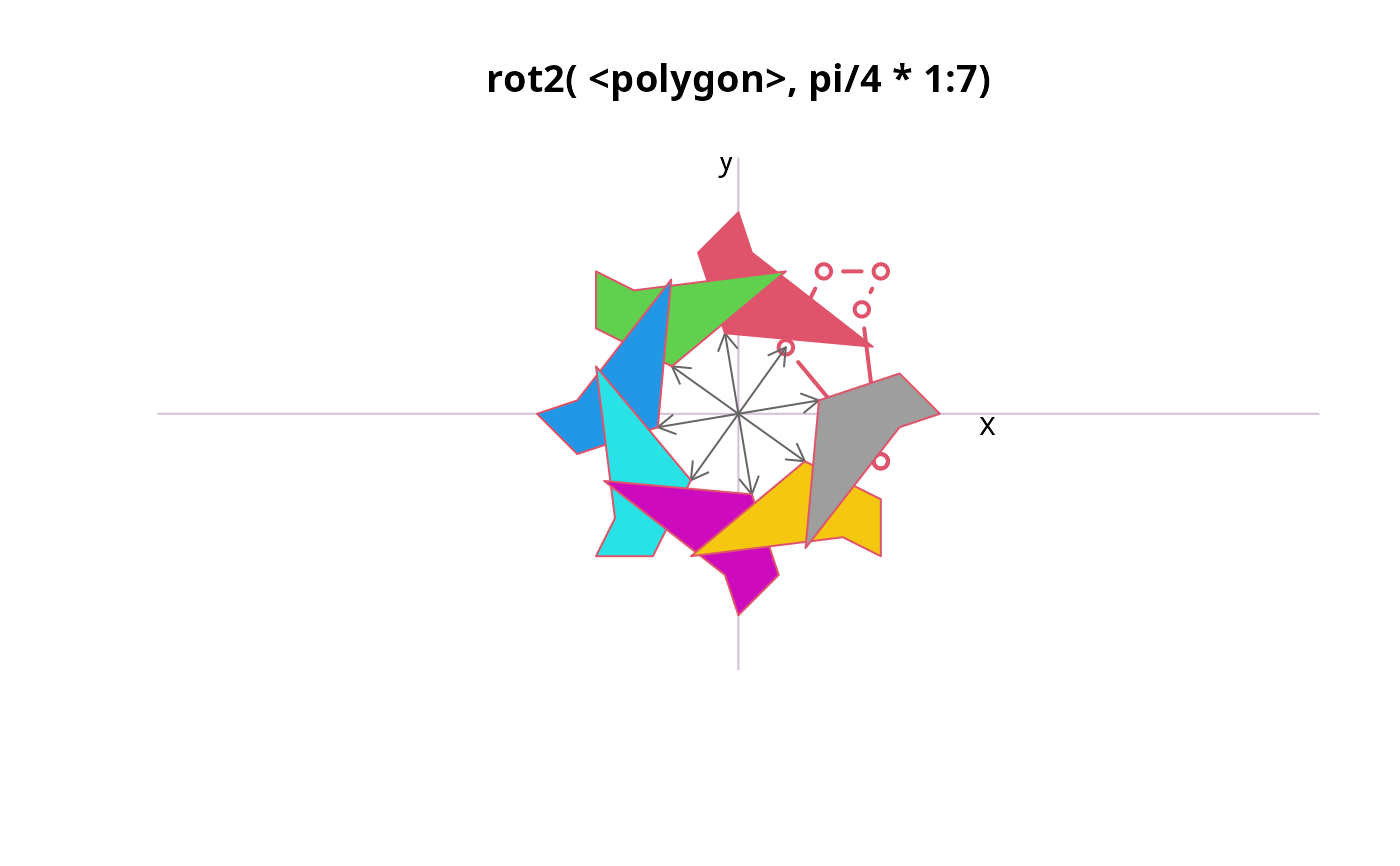 polygon(rot2(xy0, phi = phi), col = 1+phi/(pi/4), border=2, type = "b")