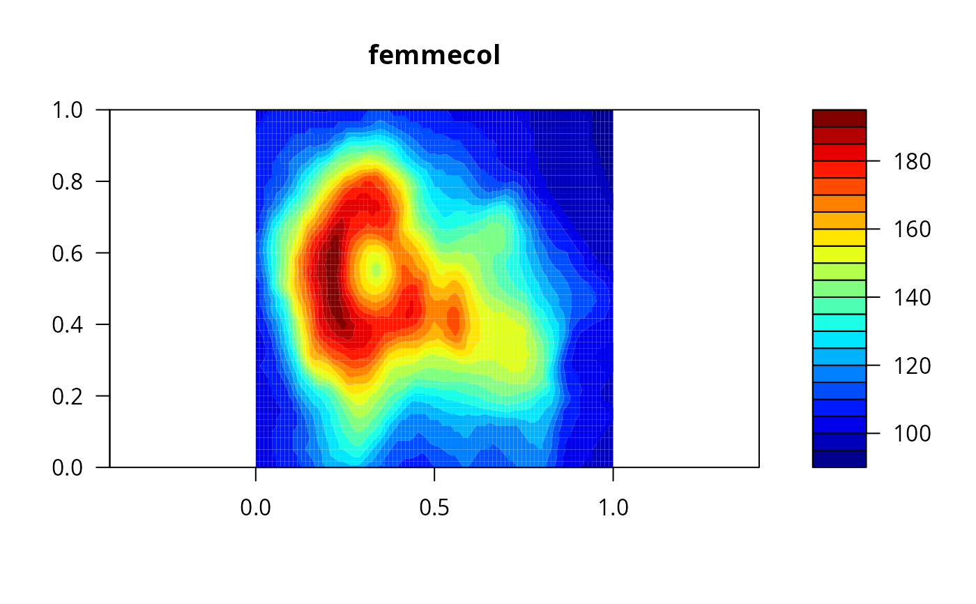 filled.contour(volcano, color = femmecol, asp = 1, main = "femmecol")