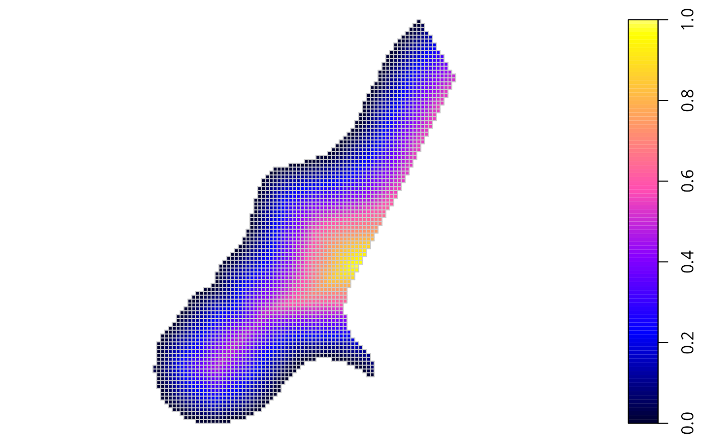 zn.sk = krige(log(zinc)~ff, meuse, meuse.grid, model = sk.model, debug.level = 0)